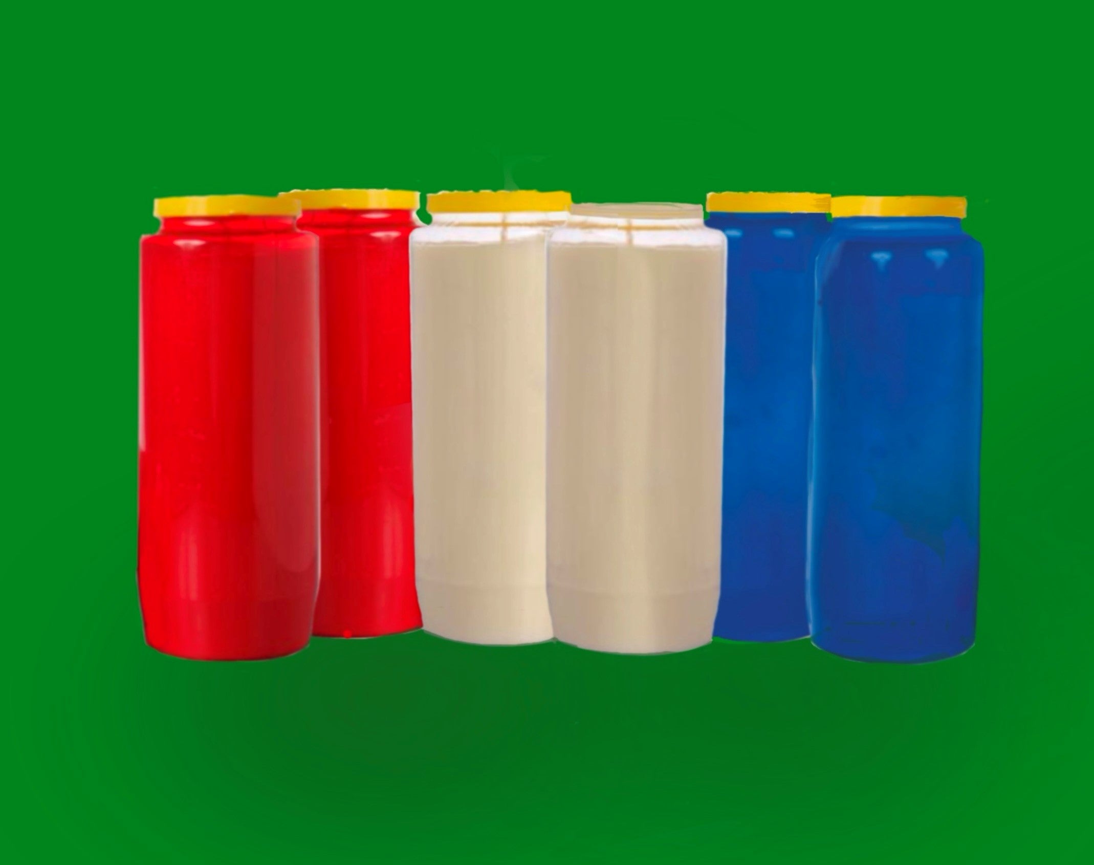 7 day Sanctuary candles.Pure vegetable waxin non flammable coloured containers.