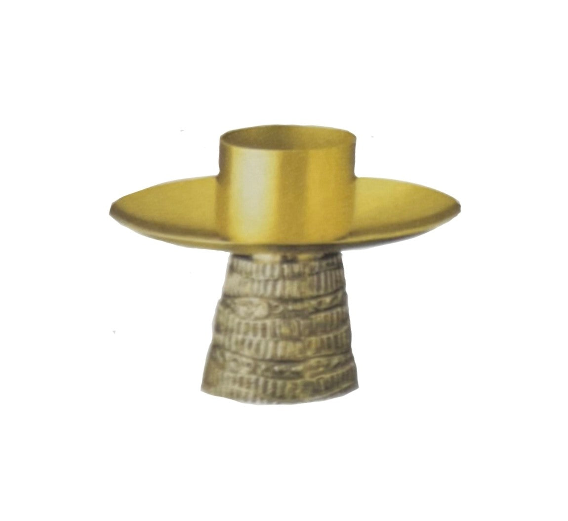 No.353 brass candlestick with cast base and satin polished pan and socket, height approx. 10cm, socket approx. 5cm diameter