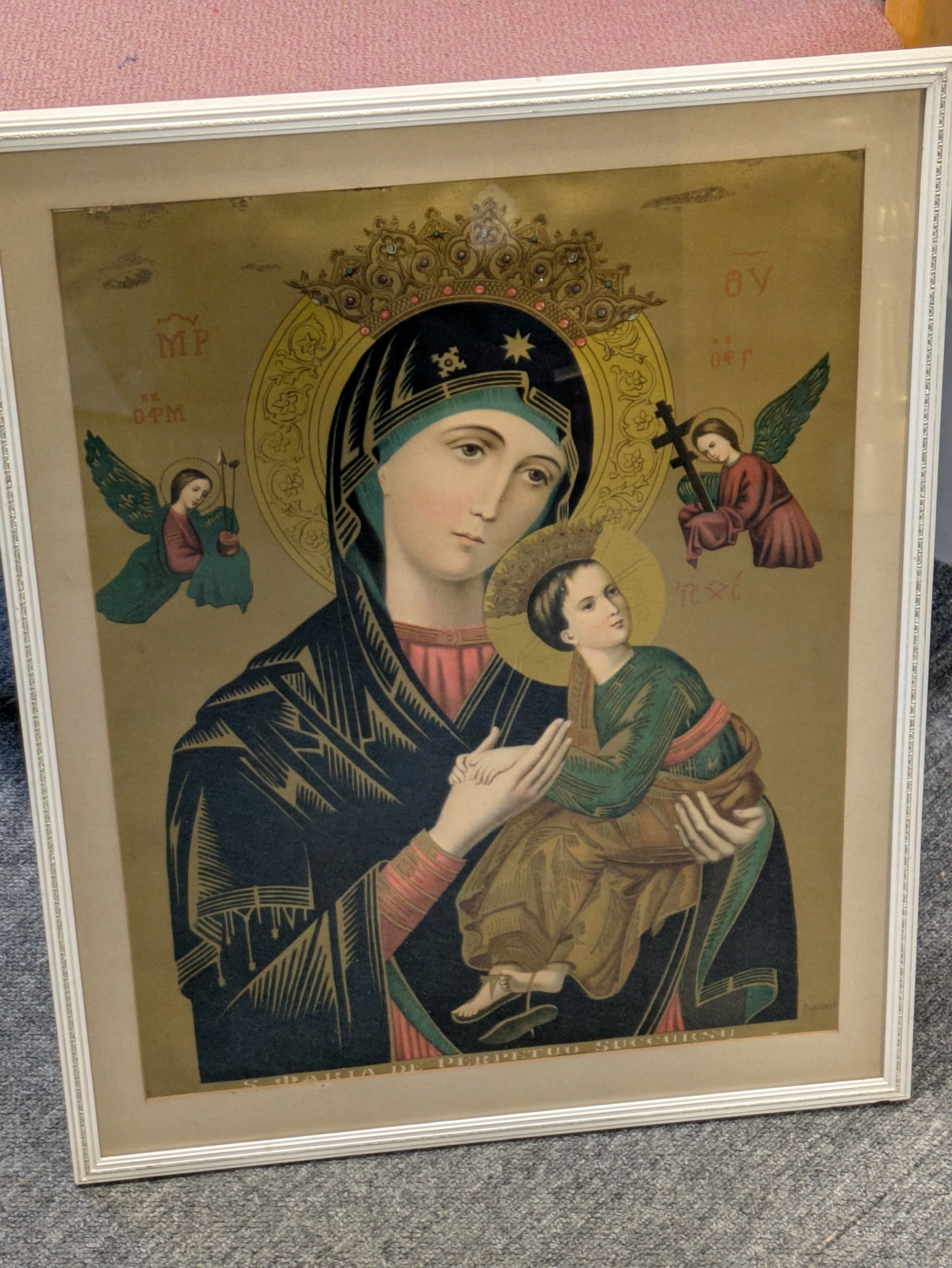 Glazed and framed print of Our Lady of Perpetual Succour, overall size approx. 24" x 18"