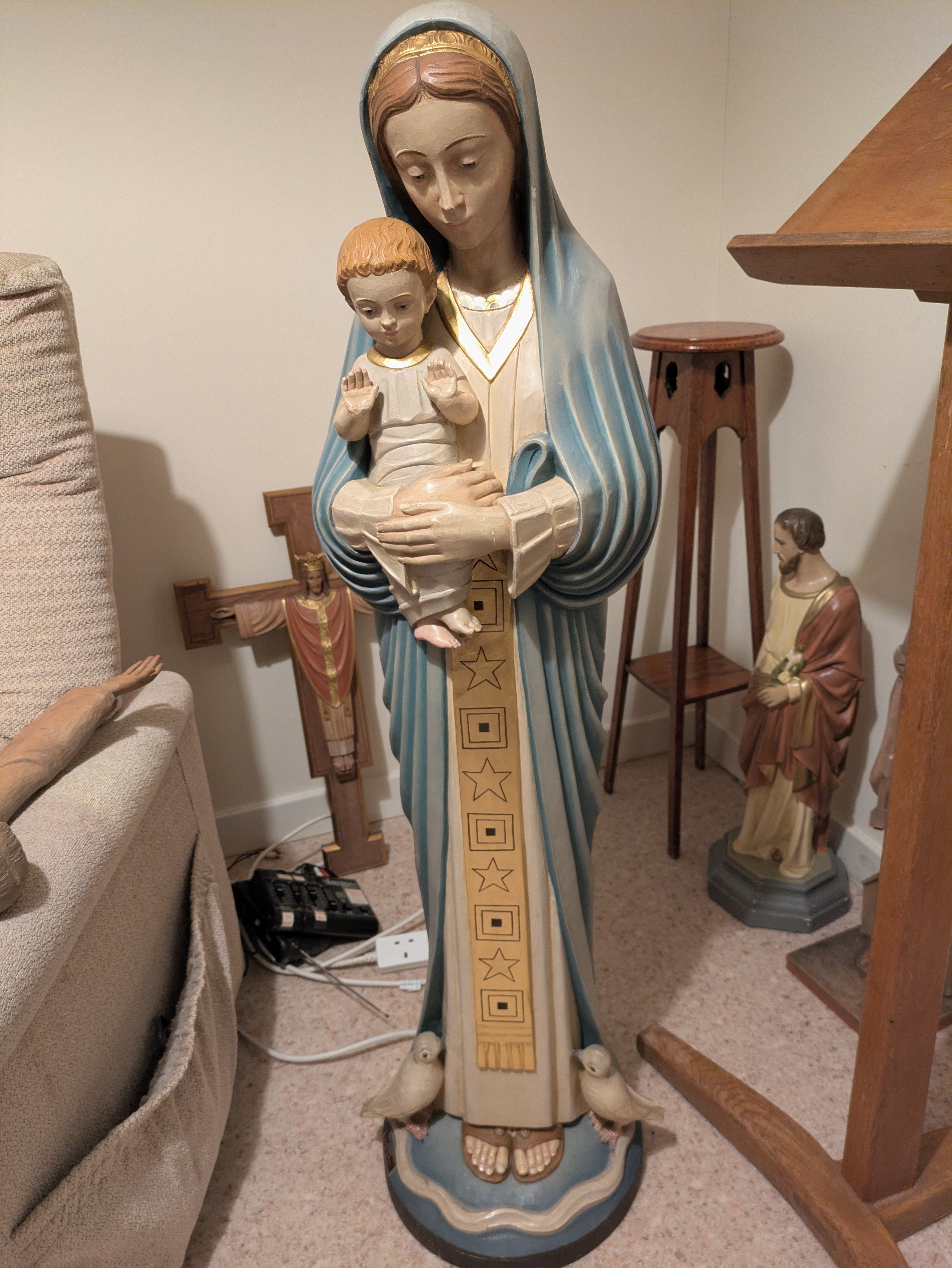 Fabulous 48" hand carved statue of Our Lady of Peace, by Ferdinand Stuflesser, beautifully finished