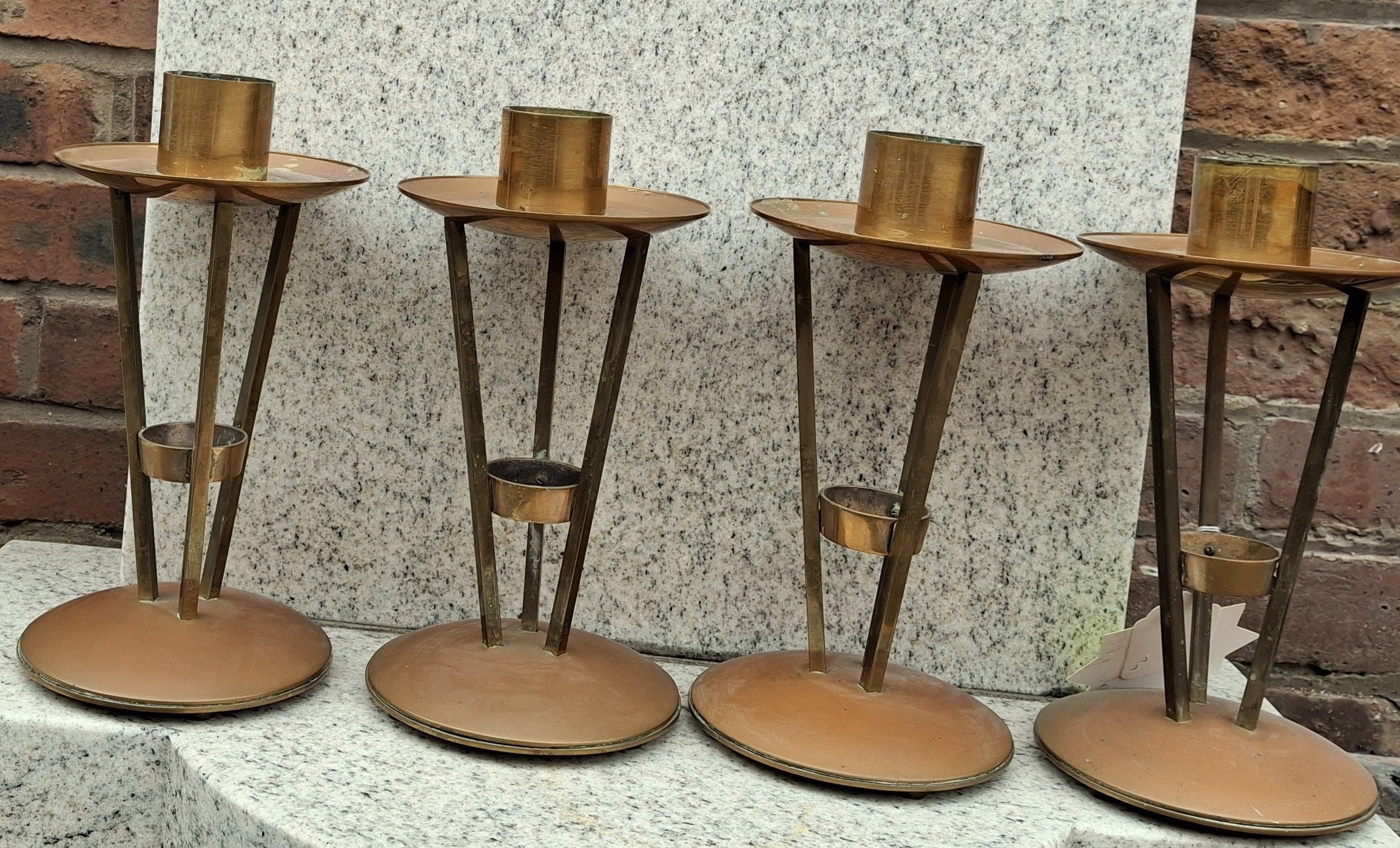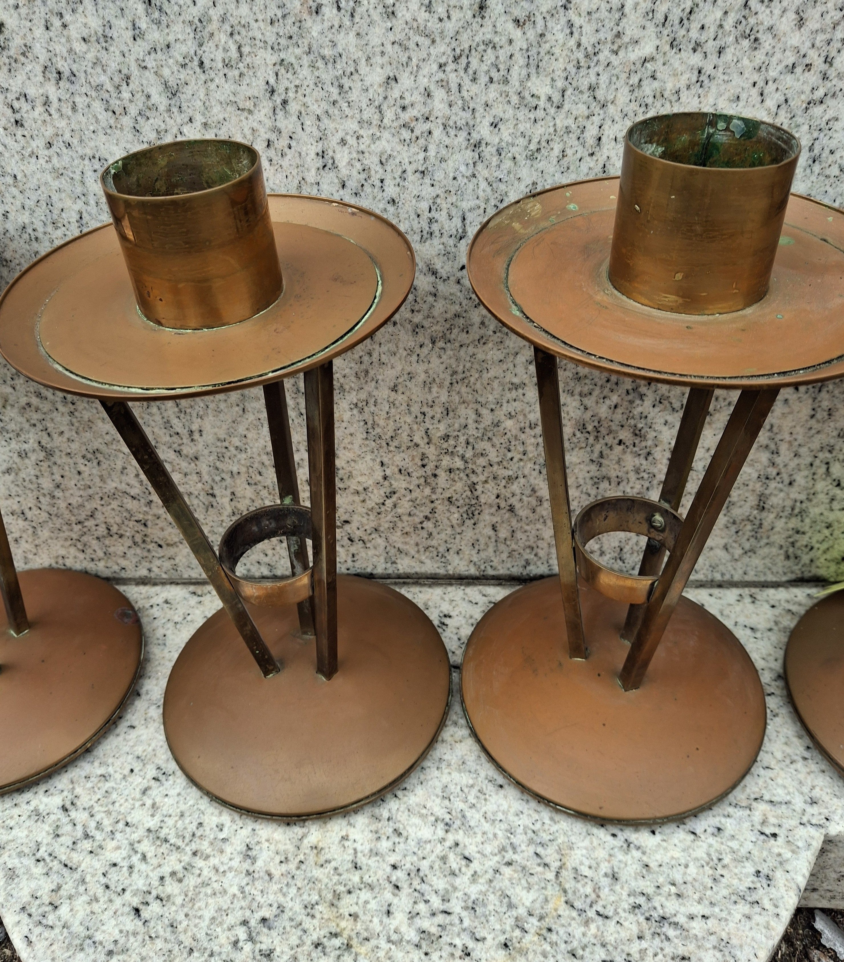 Secondhand 2 Pairs 12" high, 6" diameter, 1960's brass candlesticks with 2" I.D. sockets