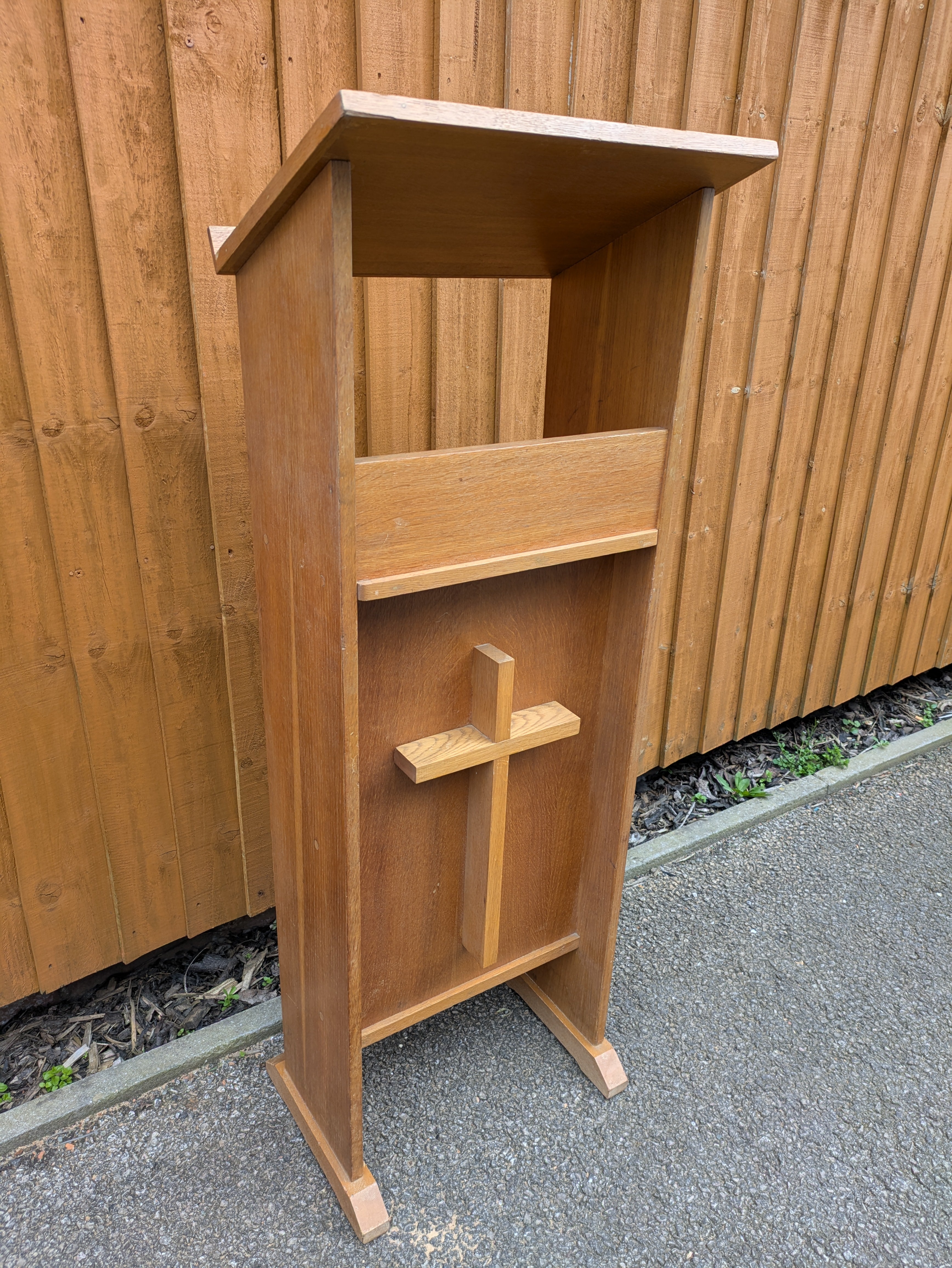 Secondhand lightweight double gabled lectern in Oak and Oak veneer