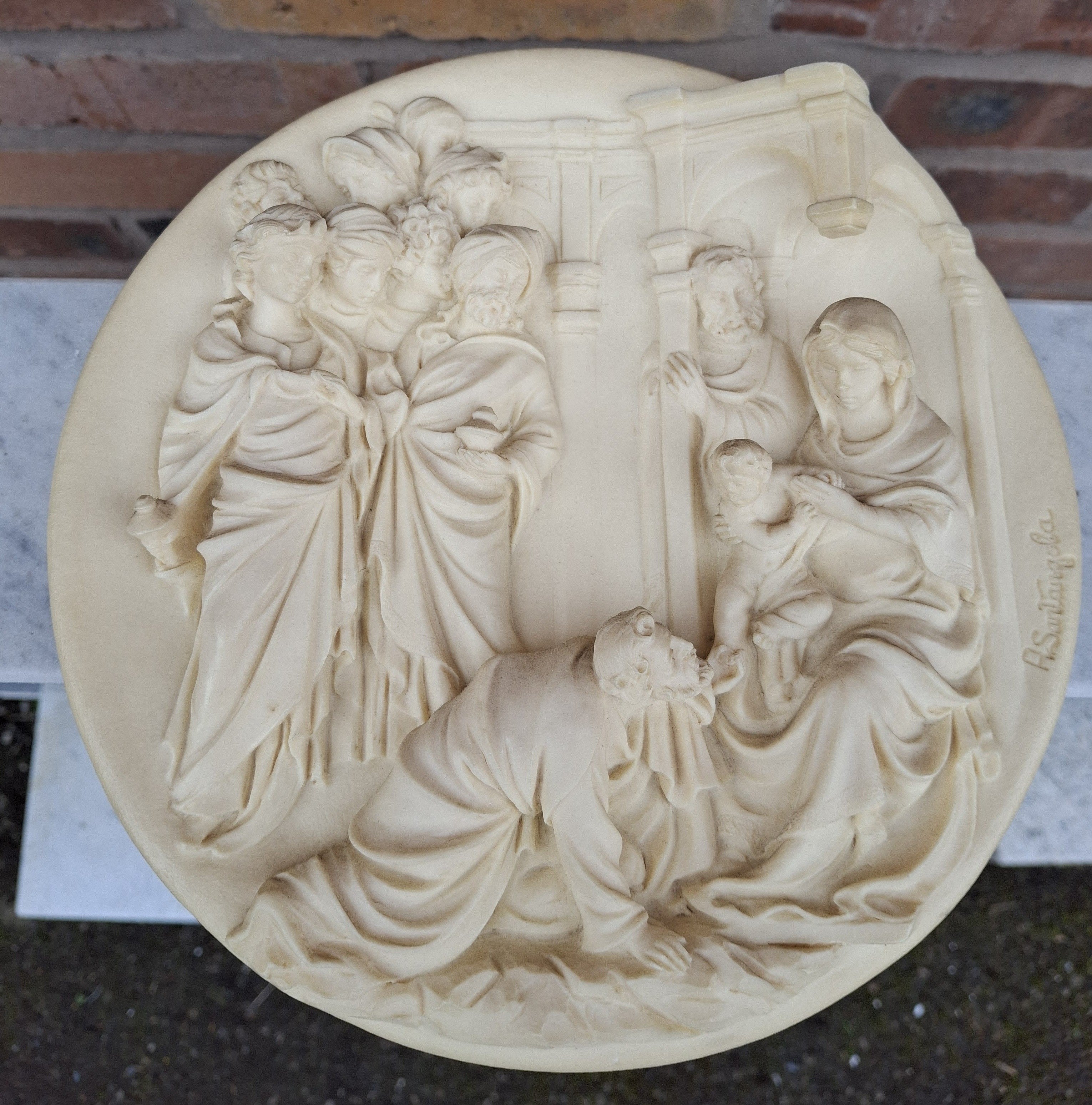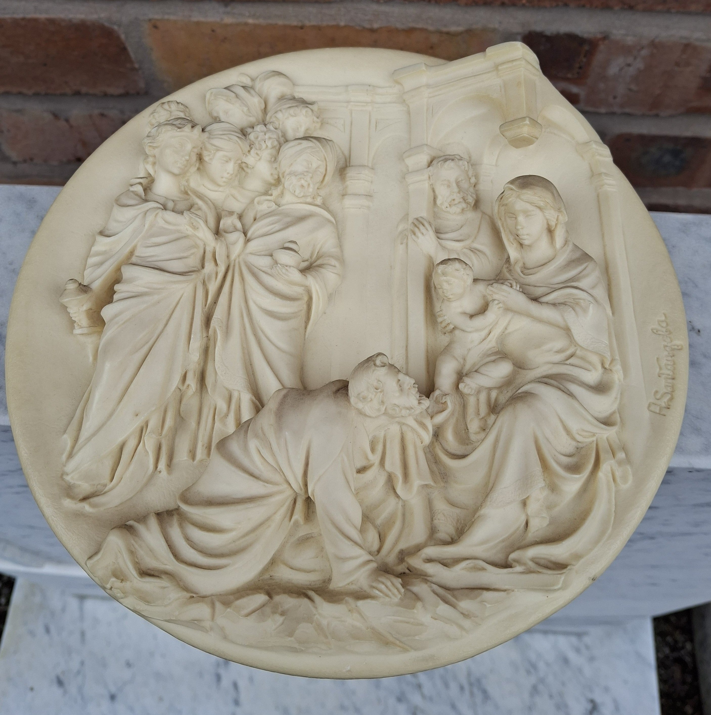 Secondhand cream plaque of the Adoration of the Magi, approximately 8.1/2" diameter
