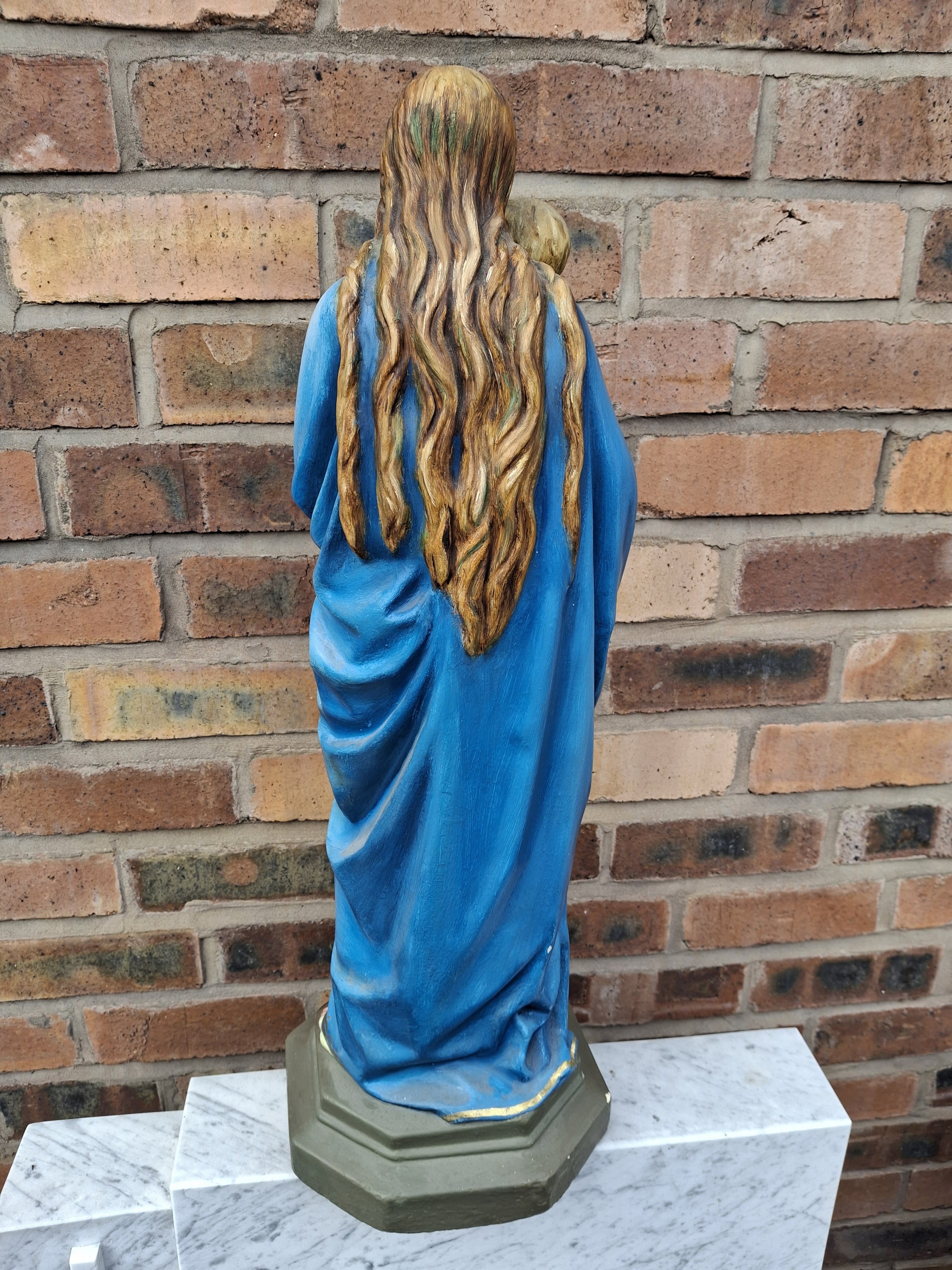 Secondhand plaster statue of Our Lady & Child, approximately 27" high, damage to child's arm