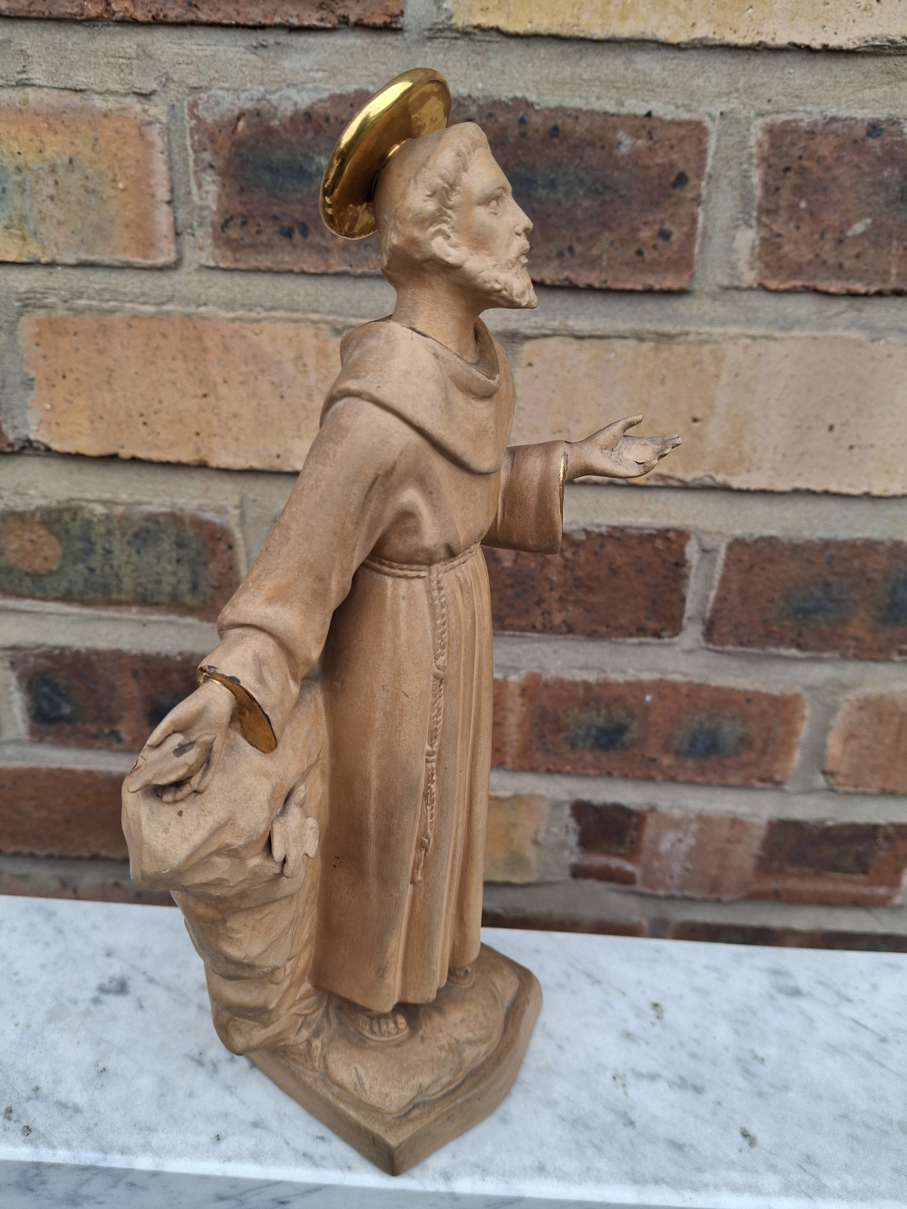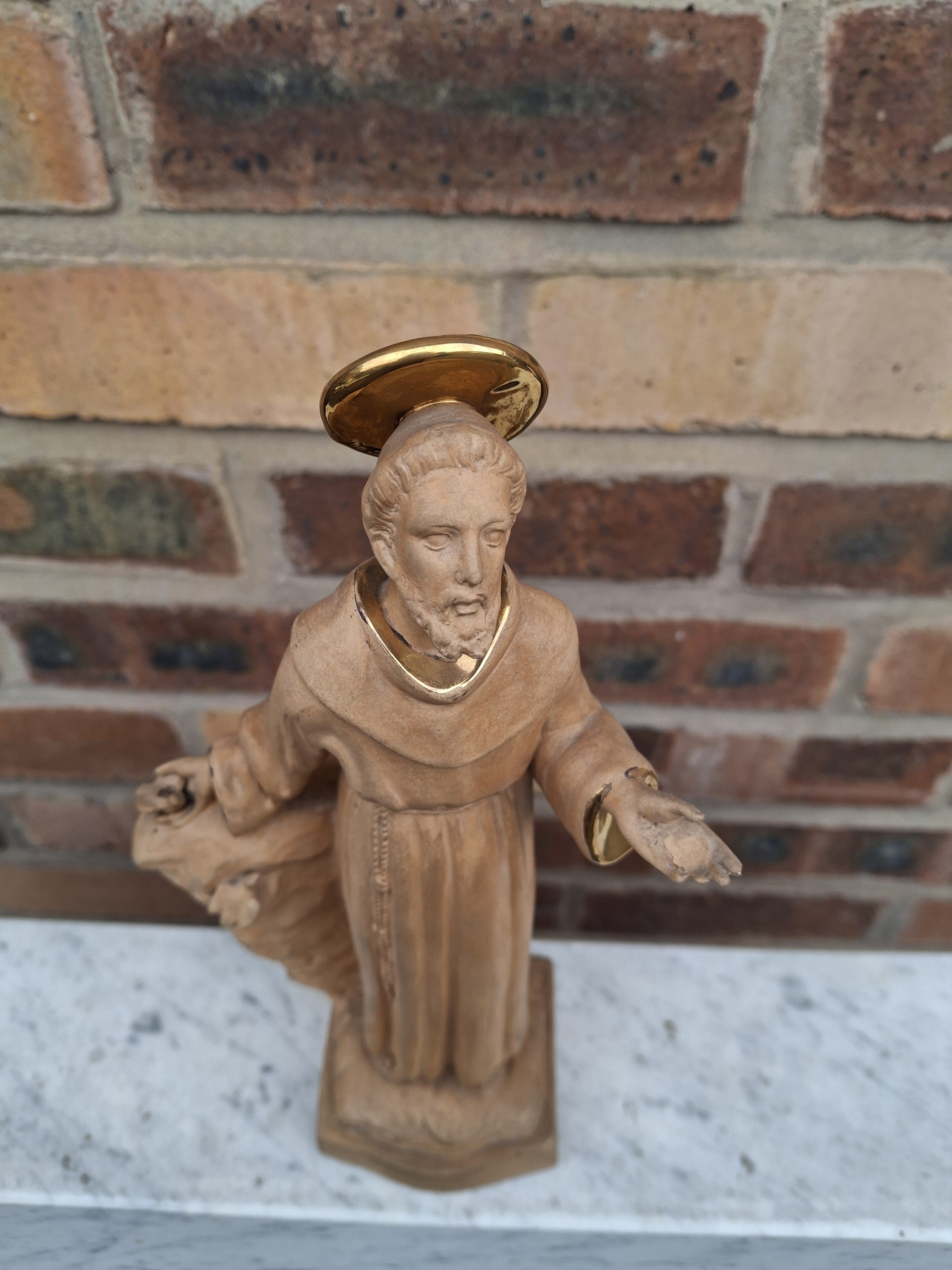 Secondhand pottery statue St Francis of Assisi, approximately 11" high