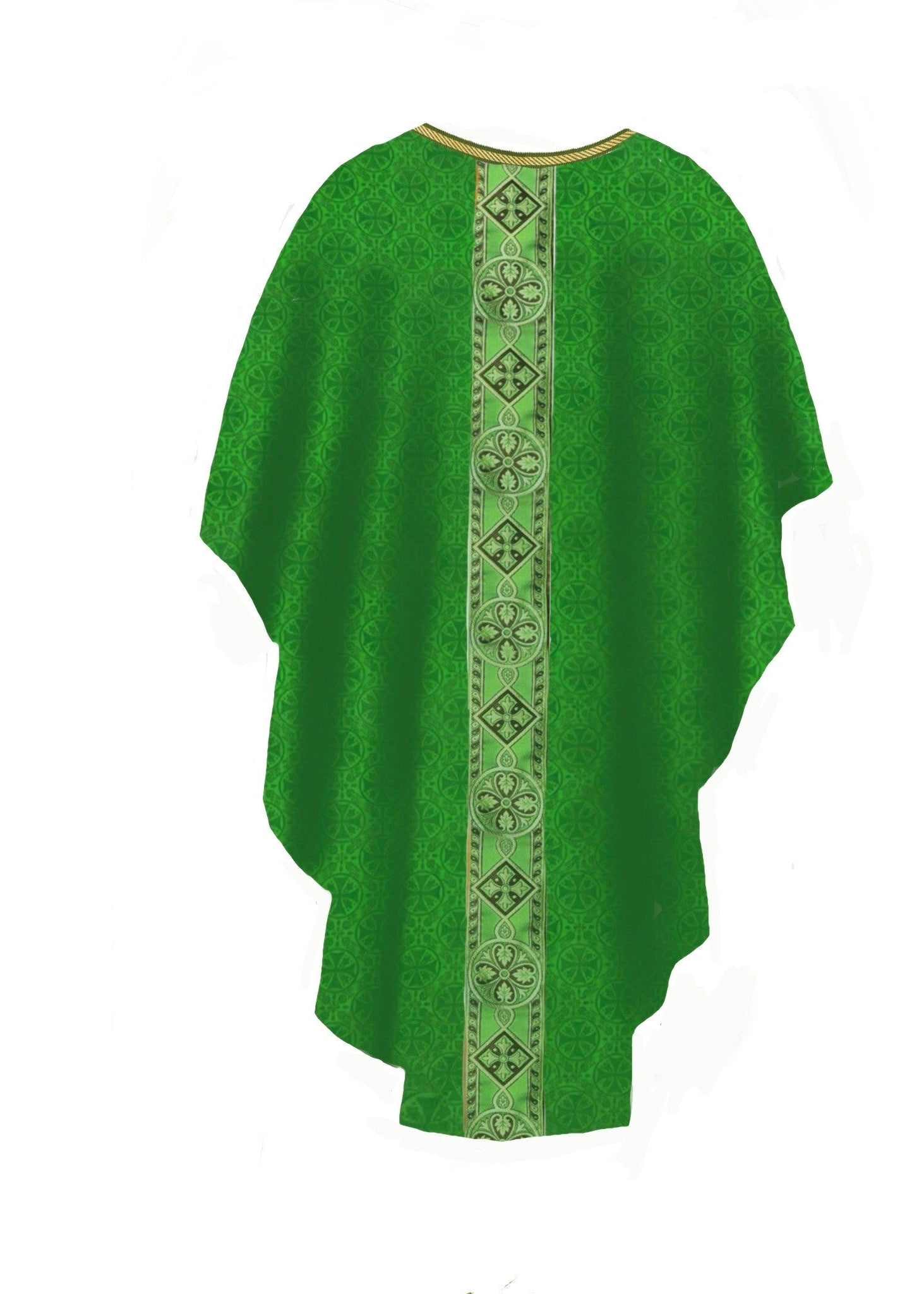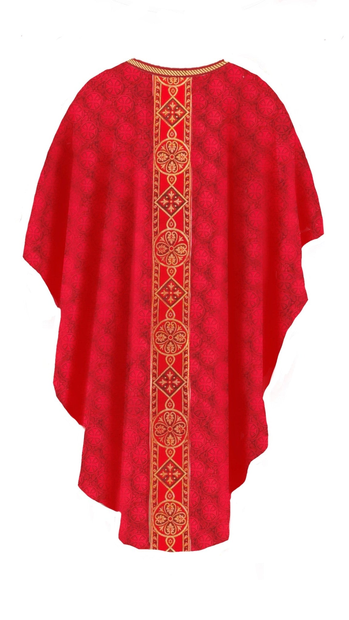Semi Gothic Chasuble and Stole, in any colour brocade. Unlined decorated single panel Orphrey.